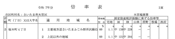 倍率評価は、その土地の固定資産税評価額をエリアや地目ごとに定められた倍率で相続税評価を算出するのですが、田んぼや畑といった農地は、農地維持のため固定資産税評価額が低く設定されていることが多く、その分倍率が高く、例えば大宮区の中で見ると、最大の倍率が桜木町4丁目にある「主要地方道さいたまふじみ野所沢線沿」の田んぼで138倍、畑は228倍に設定されています。